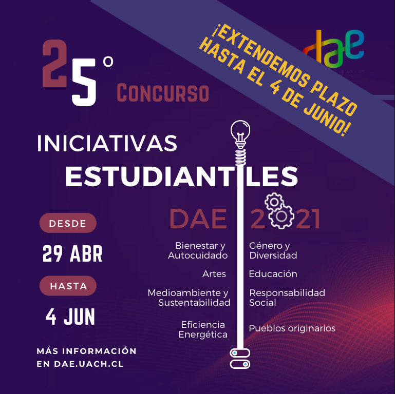 El Departamento de Orientación y Actividades Extracurriculares, de la Dirección de Asuntos Estudiantiles, invita a las y los estudiantes regulares de pregrado y postgrado de todas las Sedes y Campus de la UACh, a postular al 25º Concurso de Iniciativas Estudiantiles.